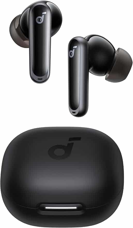 Outro destaque do Soundcore P40i é a autonomia de bateria que pode chegar a até 60 horas de reprodução, considerando o uso combinado do estojo de carregamento. Isso permite utilizar o dispositivo por longos períodos antes de precisar recarregar.