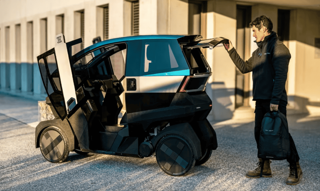 A empresa francesa AEMotion apresentou um inovador microcarro elétrico que combina a agilidade de uma motocicleta com a segurança de