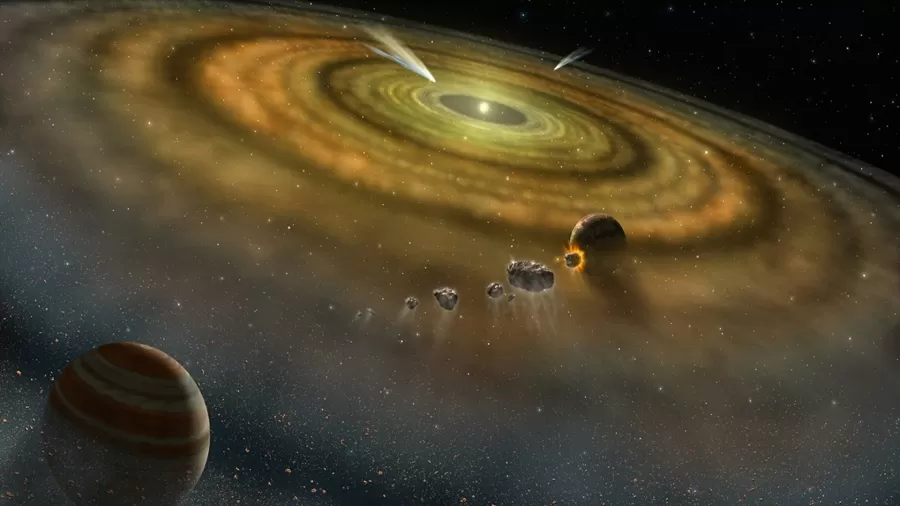 Astrônomos encontraram um exoplaneta gigante escondido atrás do disco de gás e poeira ao redor de uma estrela jovem. Segundo