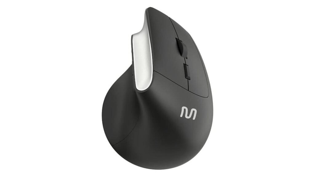 O Mouse sem Fio Multi Multilaser ErgĂ´nomico Vertical MO384 possui um formato projetado para posicionar a mĂŁo de maneira mais