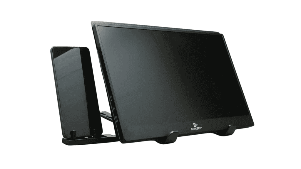 O formato portátil e fino facilita transportar o monitor junto com notebooks ou tablets, permitindo montar um ambiente de trabalho mais completo em diferentes locais, como escritórios, coworkings ou viagens.