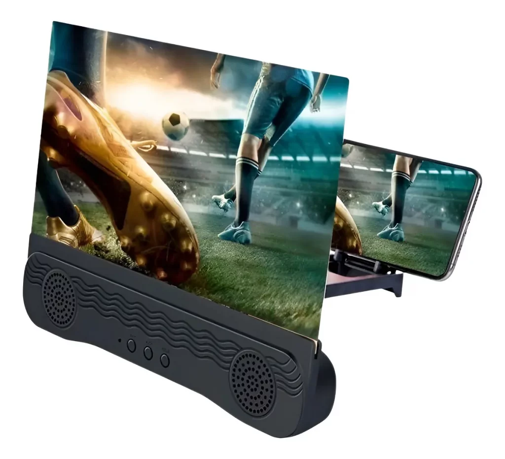 Para quem prefere uma experiência mais visual e confortável, o ampliador de tela com som Bluetooth é uma ótima escolha. Ele funciona como uma “lupa” para o celular, aumentando a imagem e proporcionando uma experiência semelhante a assistir em uma mini TV.
